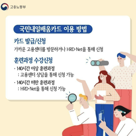 미래를 위한 준비, 지금 시작하세요! 국민내일배움카드는 직업능력 향상을 위한 최고의 선택입니다. 다양한 교육과정과 혜택으로 여러분의 꿈을 현실로 만들어 드립니다.
