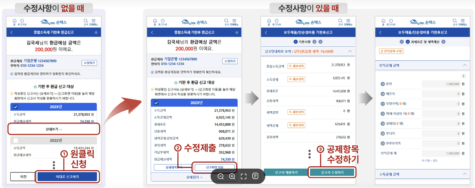손택스 앱 설치 → 로그인 → ‘원클릭 환급신고’ 클릭 → 조회 → 수정 없다면 즉시 신고 가능