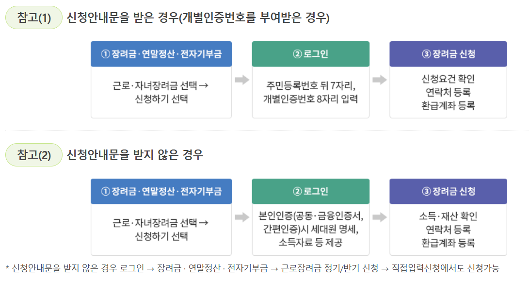 이전에 장려금 신청 안내를 받고, 자동 신청에 사전 동의한 경우에는 향후 2년 동안 안내 대상에 선정되면 별도 절차 없이 자동으로 신청됩니다.