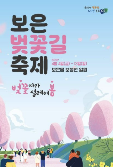 보은 벚꽃길 축제: 3월 29일 개화, 축제는 4월 4일 ~ 4월 13일