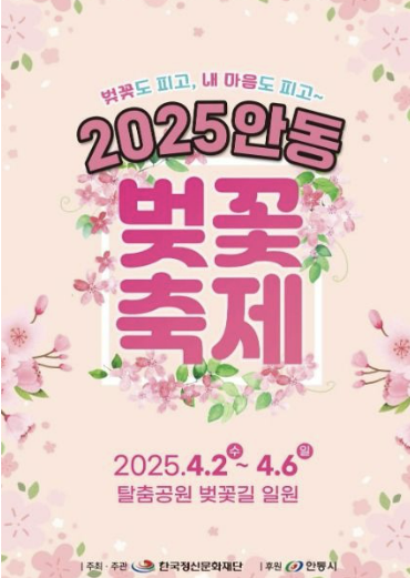 안동 벚꽃축제: 3월 24일 개화, 축제는 4월 2일 ~ 4월 6일
