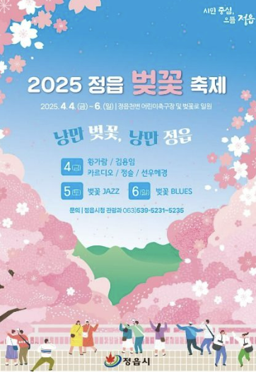 정읍 벚꽃축제: 3월 26일 개화, 축제는 4월 4일 ~ 4월 6일