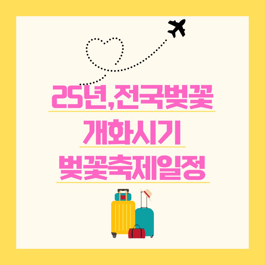 따뜻한 봄바람이 불어오면 전국 곳곳은 벚꽃으로 물듭니다. 2025년에도 어김없이 아름다운 벚꽃이 피어나는 계절이 다가왔습니다. 본 글에서는 한국관광공사와 웨더아이에서 제공한 ‘2025 벚꽃 개화 지도’를 바탕으로 전국 주요 도시들의 개화 시기와 지역별 벚꽃 축제 예상 일정을 정리하였습니다. 실제 축제 일정은 추후 각 지역 지자체에서 공지될 예정이니, 본 글은 여행 계획을 위한 참고용으로 활용해 주시기 바랍니다.