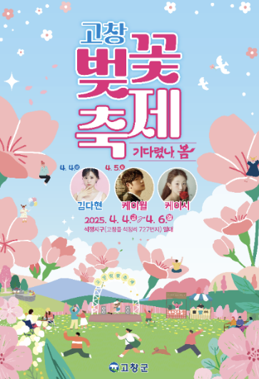 고창 벚꽃축제: 3월 26일 개화, 축제는 4월 4일 ~ 4월 6일