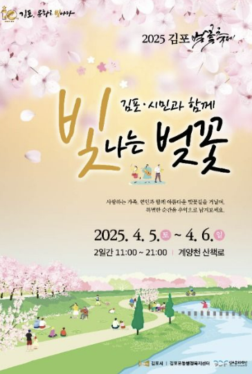 김포 빛나는 벚꽃축제: 2025년 4월 1일 개화, 축제는 4월 5일 ~ 4월 6일