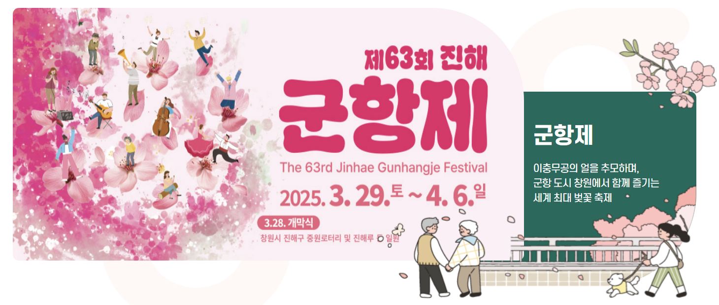 진해 군항제 (창원시): 2025년 3월 23일 개화, 축제는 3월 29일 ~ 4월 6일