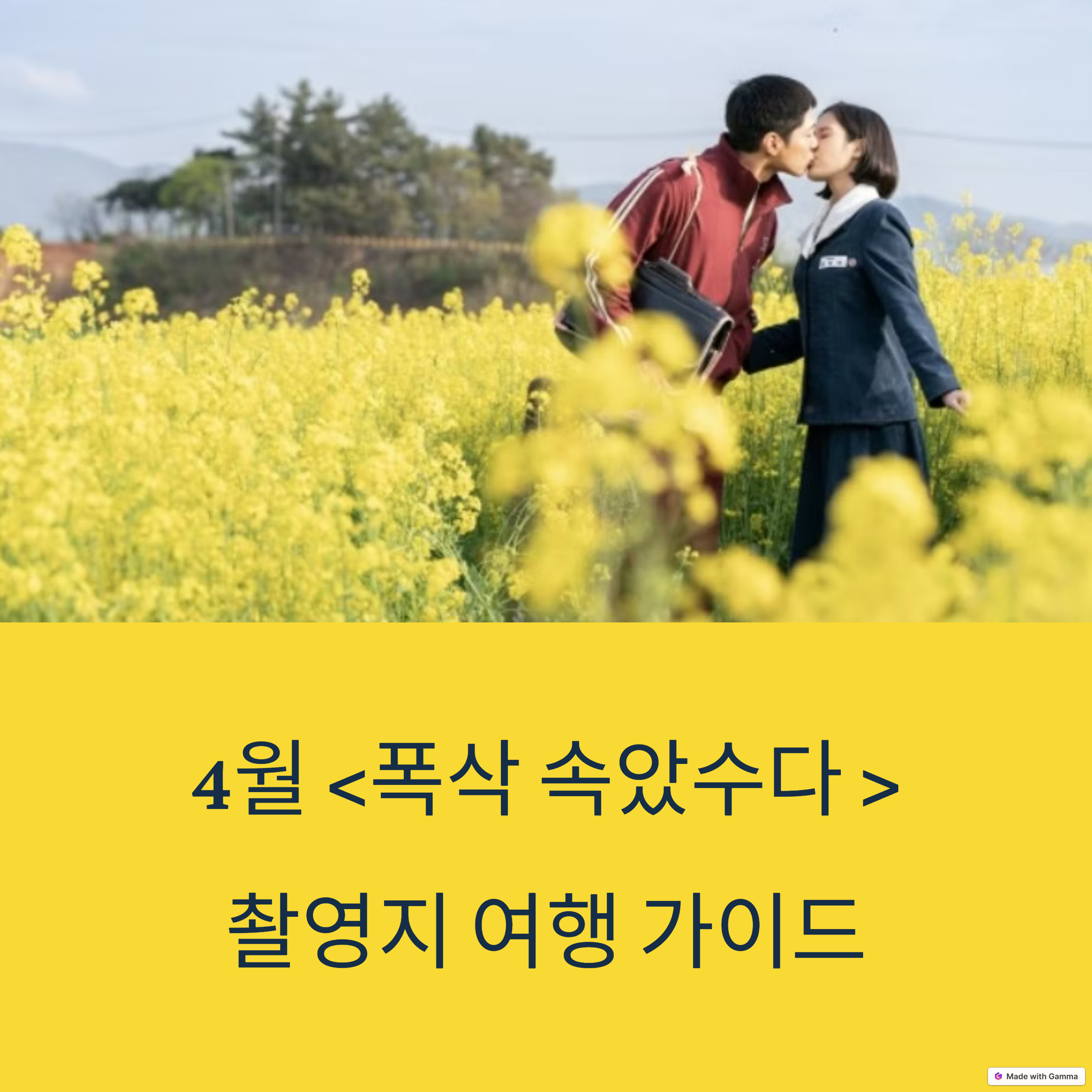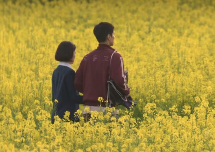 푸르른 하늘 아래 노랗게 물든 꽃밭, 그리고 두 주인공의 순수한 감정이 어우러진 이 장면은 ‘제주도’에서 촬영된 것으로 생각한 분들이 많았을 것입니다.
